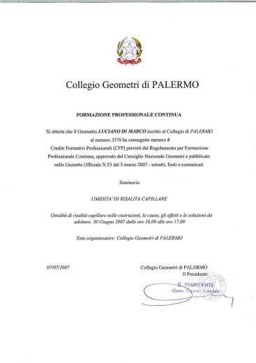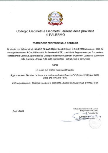 Attestato di Formazione corso Teoria e pratica delle riconfinazioni-RILIEVI TOPOGRAFICI