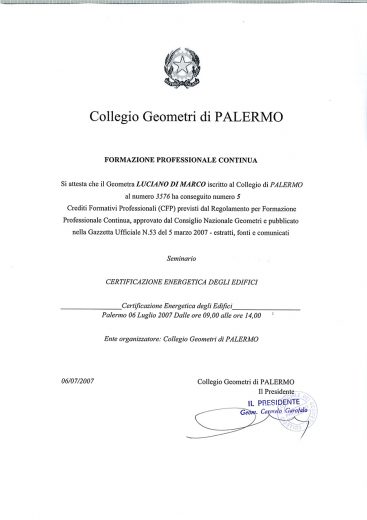 Attestato corso Certificazione Energetica-TERMOGRAFIA